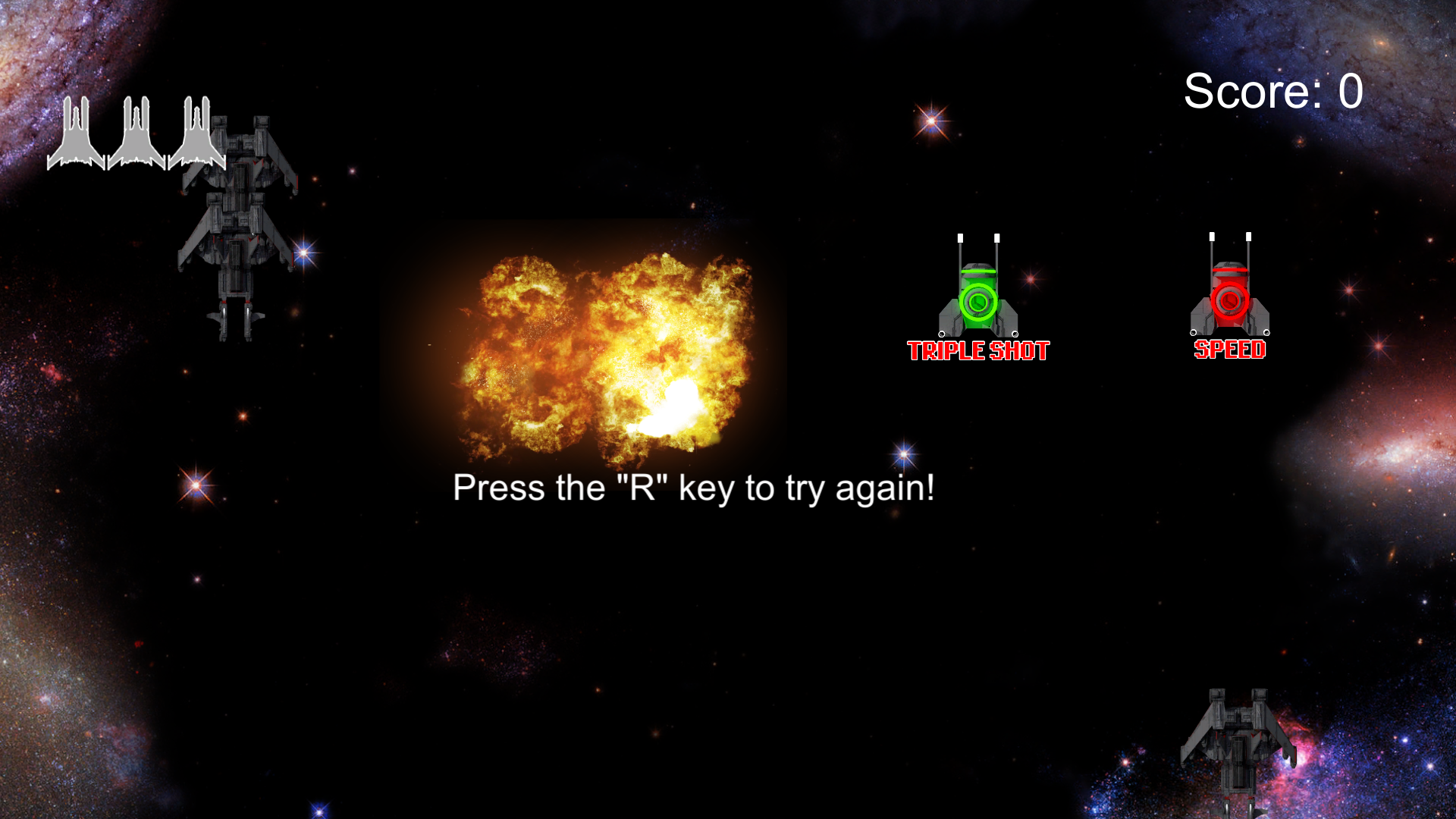R - restart the game when all your lives are lost